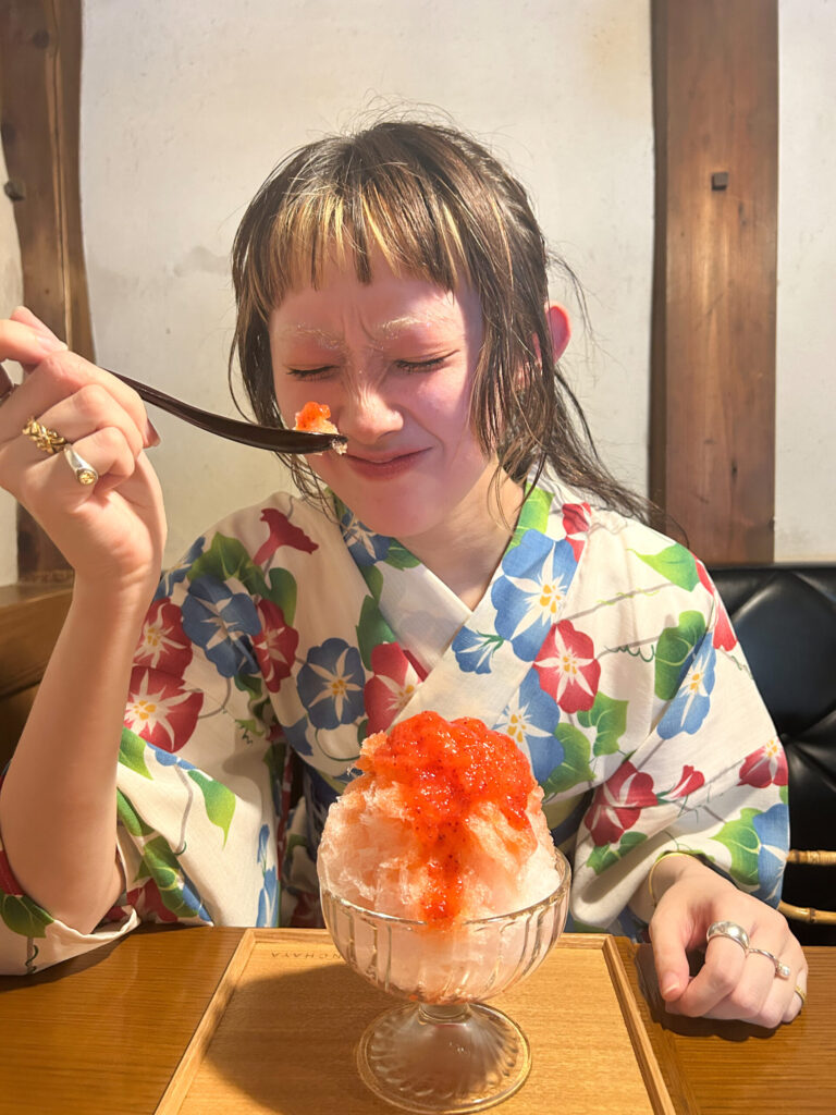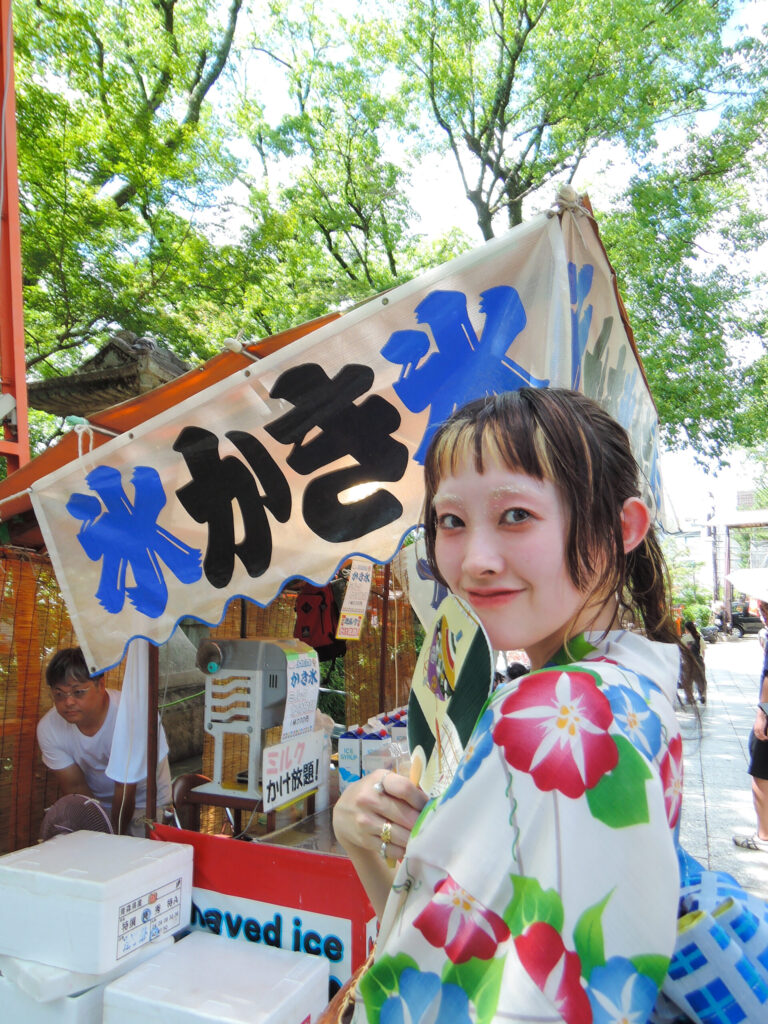 境内でいつも開かれている屋台、ここのかき氷のメロンがめっちゃうまいんです。