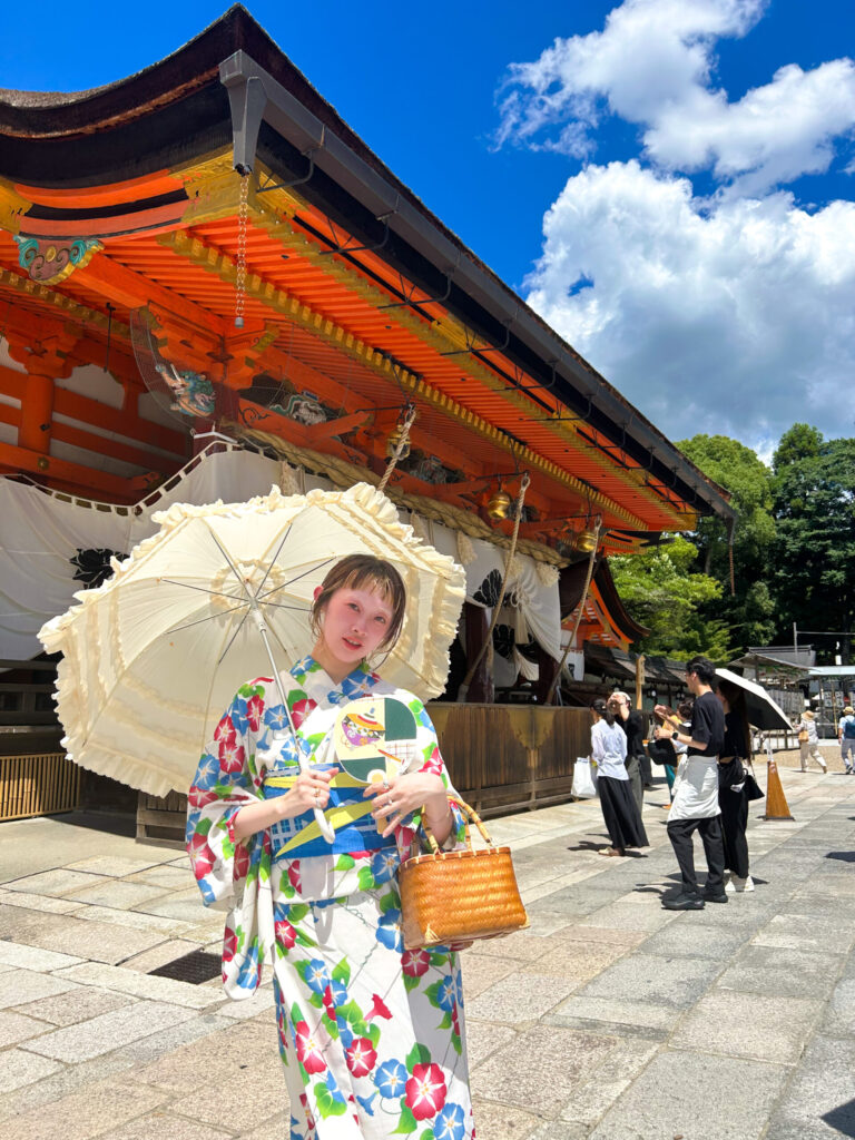祇園八坂神社にやってきました。めっちゃ人で賑わっていましたね。