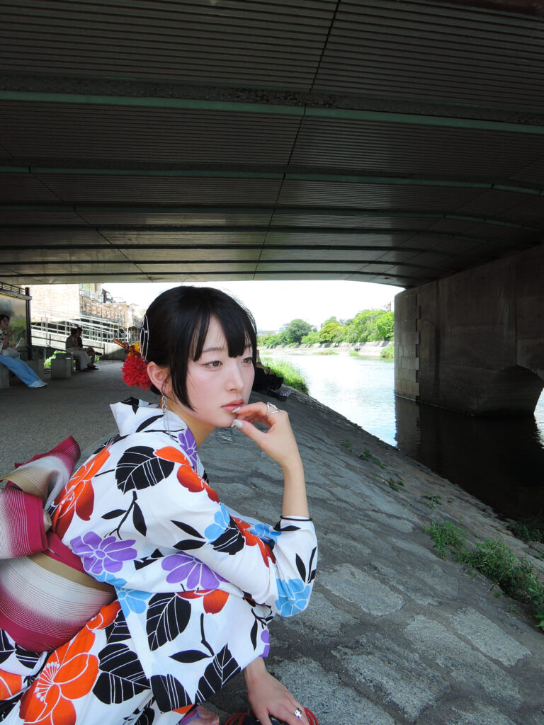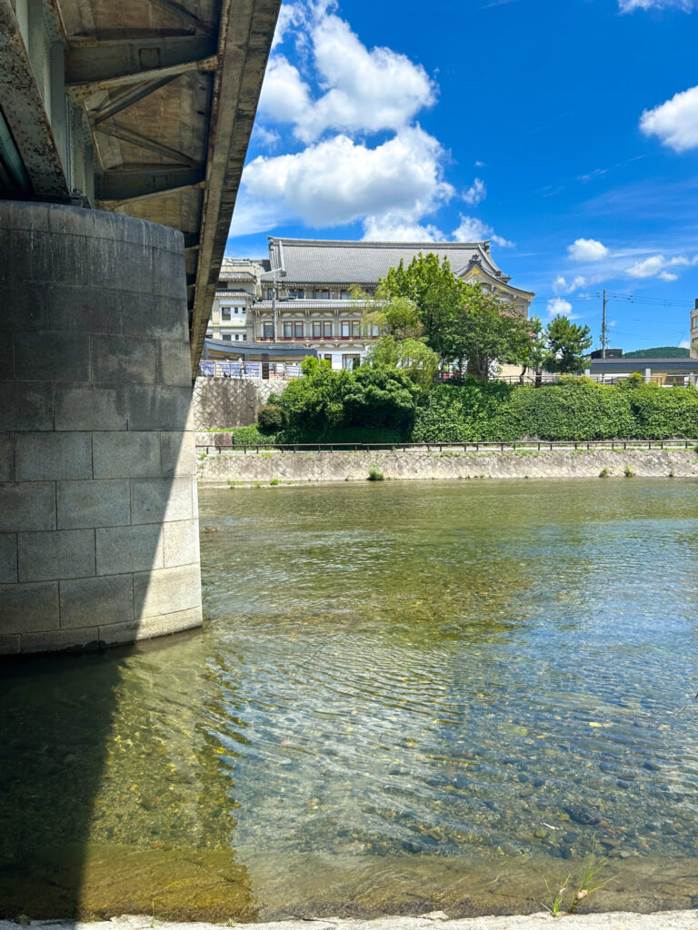 通りかかった鴨川。暑すぎたこの日、鴨川の四条大橋の下で涼む人がたくさんいました。