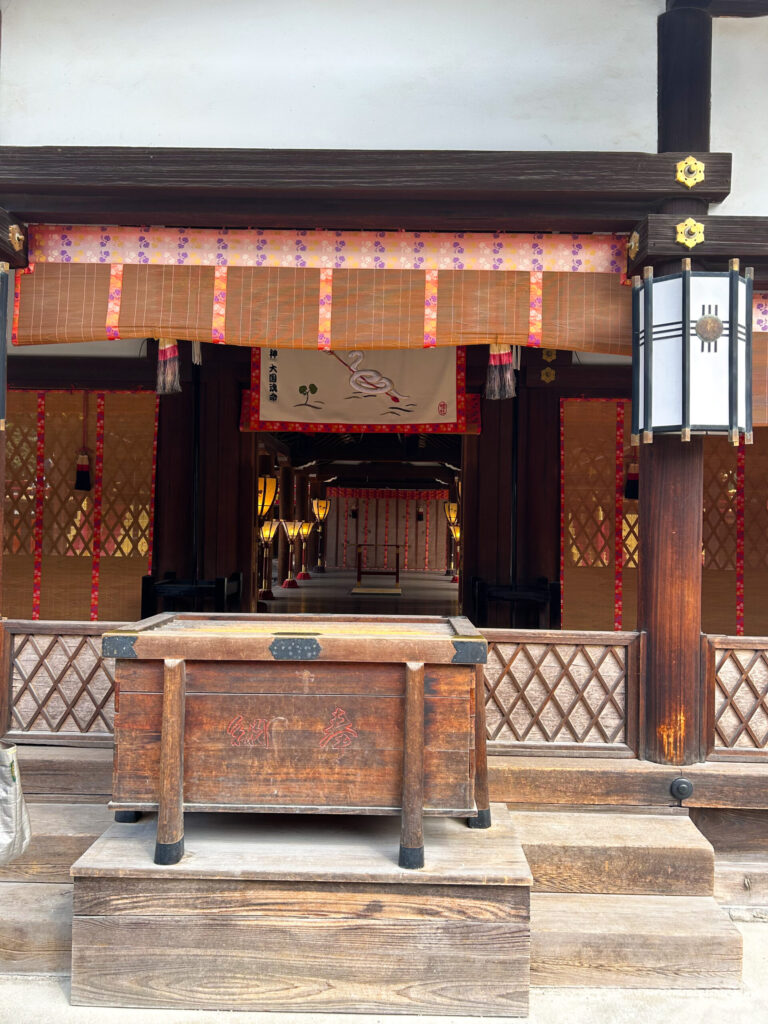 賀茂建角身命(かもたけつぬみのみこと)と、玉依媛命(たまよりひめのみこと)が祀られ、国家安穏と世界平和をご祈願する守護神であるとともに、厄除、縁結、子宝、安産、子育、交通安全など人々の暮らしを守る神さまだそうです。