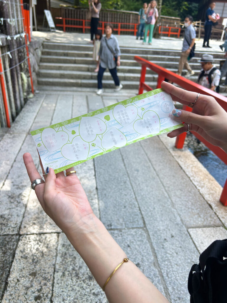 見てみると小吉でした。みずみくじは、文字が浮かび出るまでの過程が楽しめるのが特徴ですね。