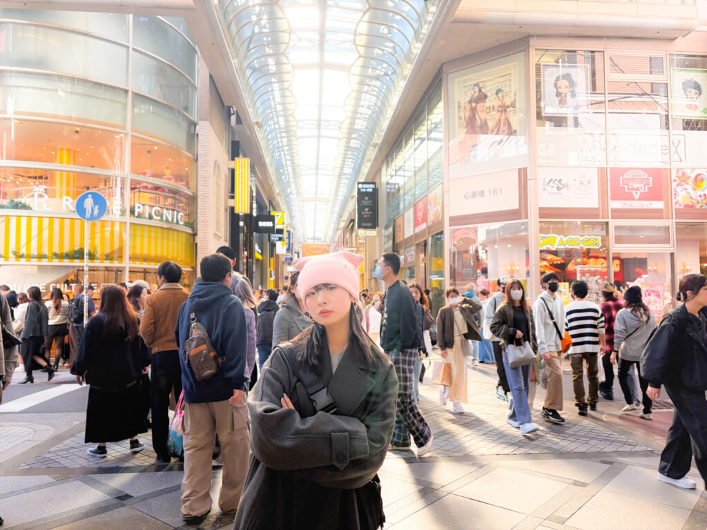 一歩中に入ると心斎橋筋商店街。地元で一番好きな場所のここは、いつも地元の住民や海外からの観光客で賑わっています。
