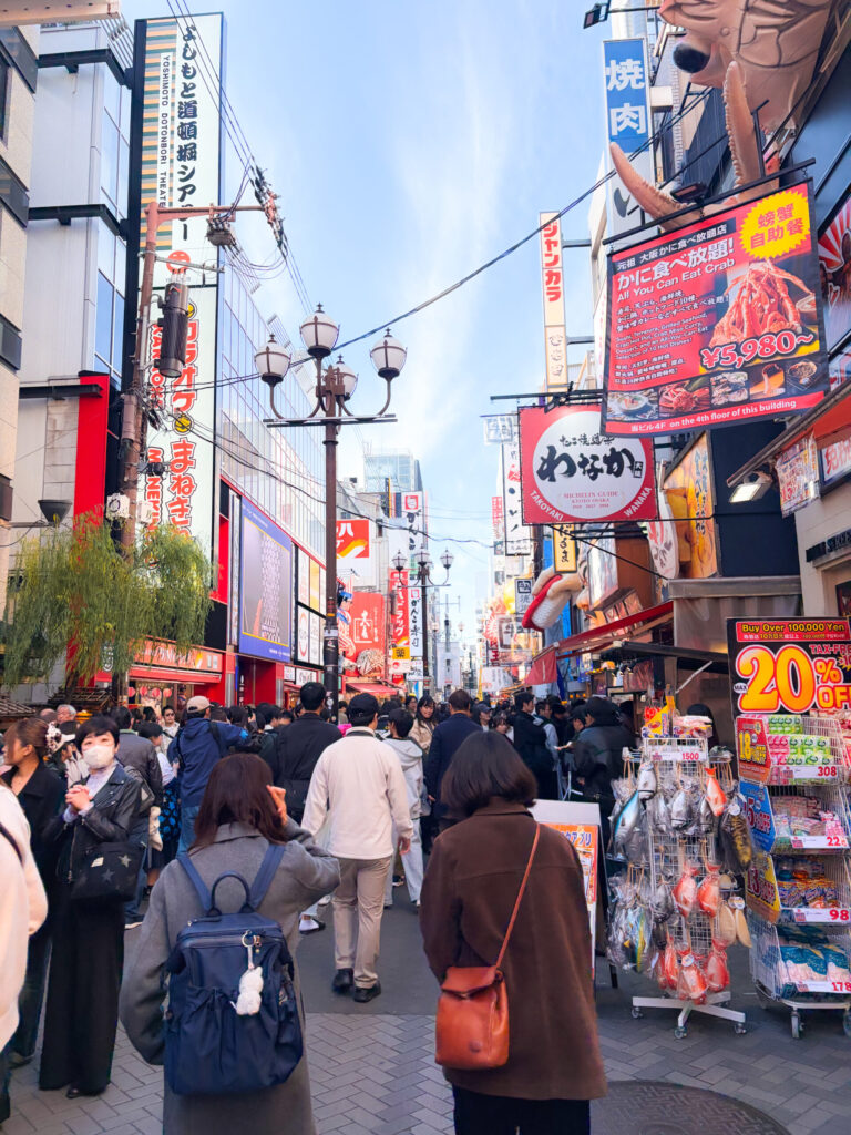 道頓堀の商店街。今となっては、もう観光名所みたいな感じです。