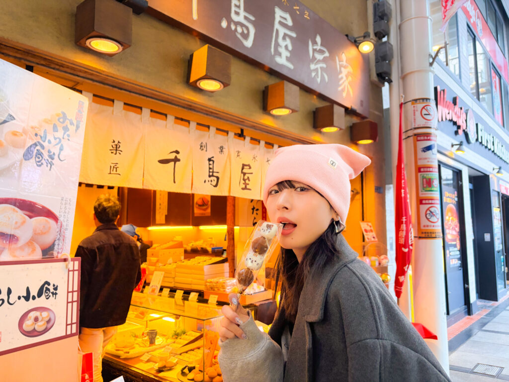 なんばの駅前にある千鳥屋宗家戎橋店。江戸時代の寛永7年創業。伝統の繊細な技に磨かれた大阪生まれの和菓子屋さん。