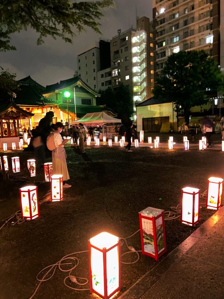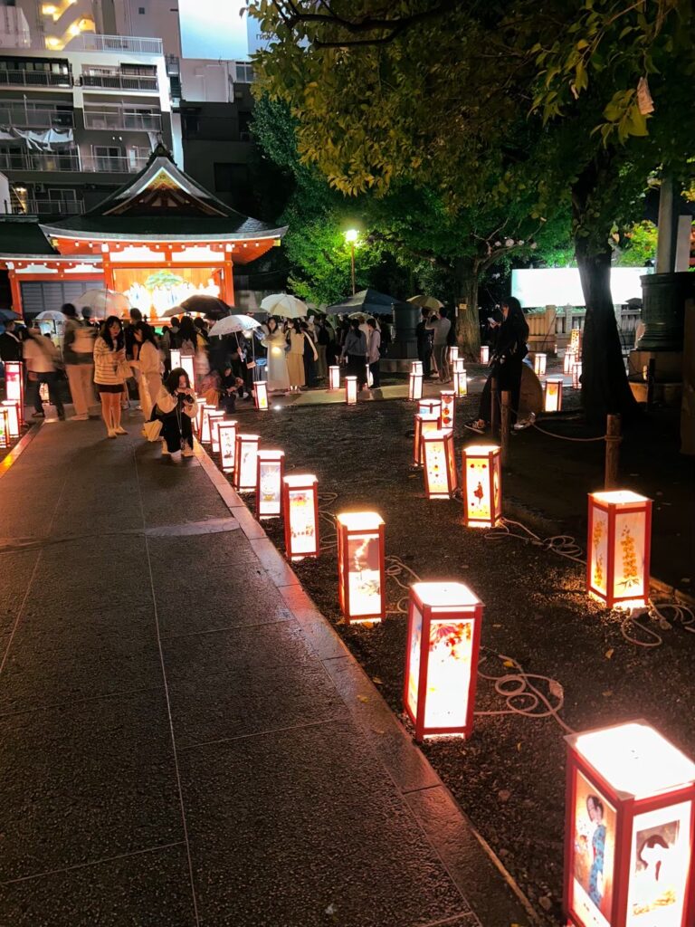 すぐそばの浅草神社で、灯篭祭りが開かれていました。いろいろな絵柄で描かれていて、めっちゃ綺麗ですね。