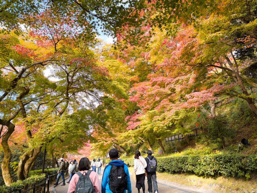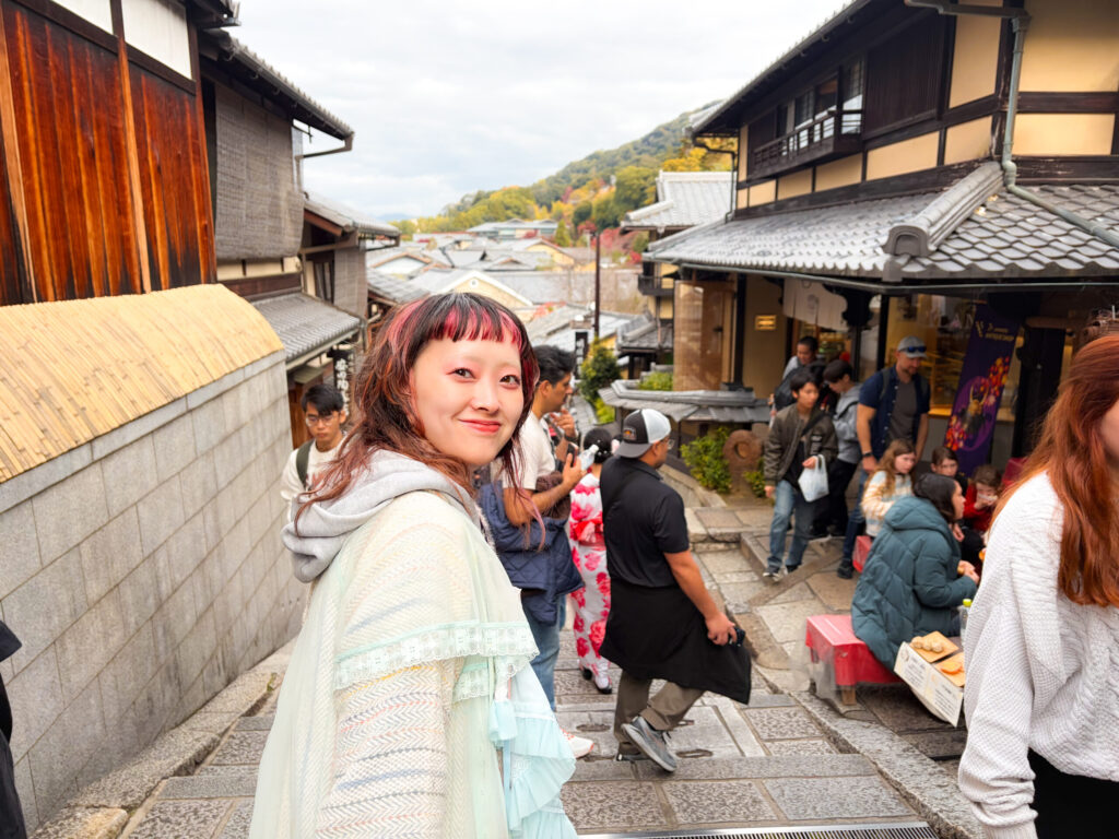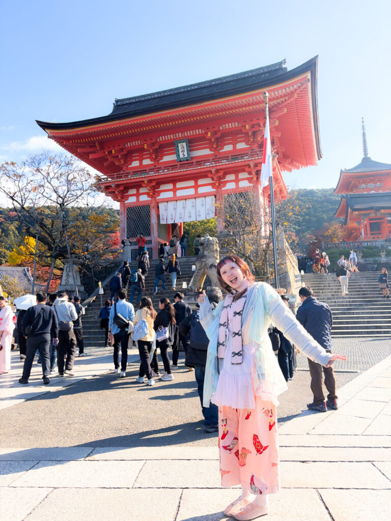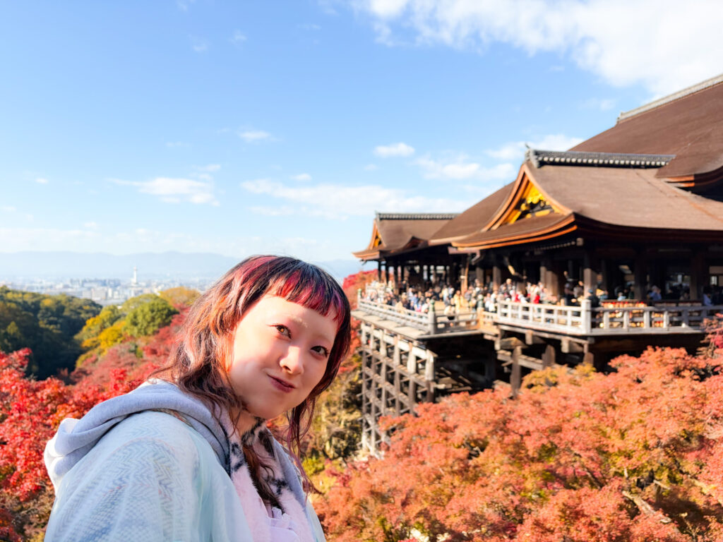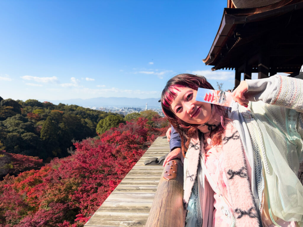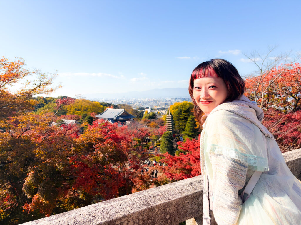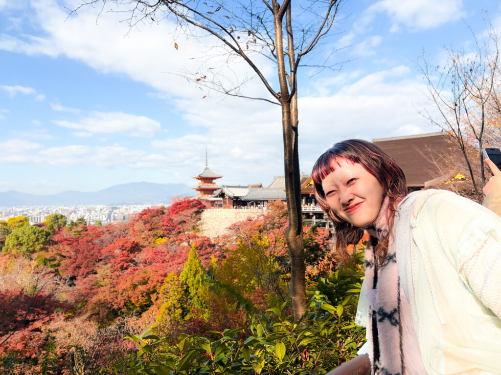 清水寺を一望できるスポットへ。ここも見晴らし良くて、紅葉も綺麗でめっちゃおすすめ。