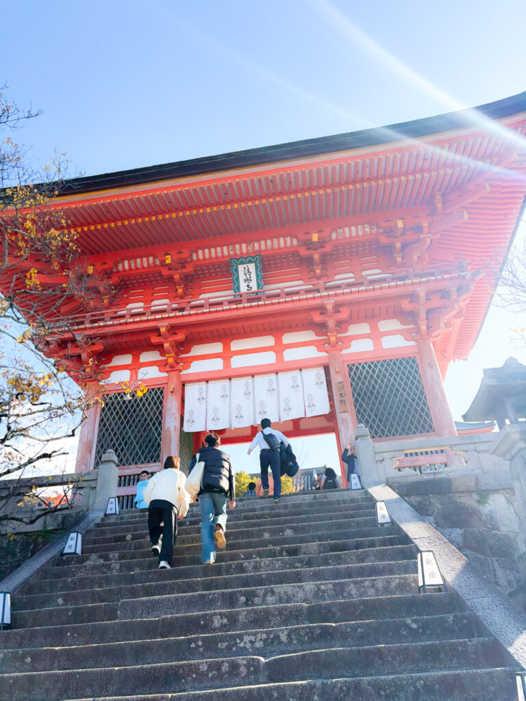 清水寺の正門、仁王門。応仁の乱の戦火で1469年に焼失しましたが、再建され今日に至ります。