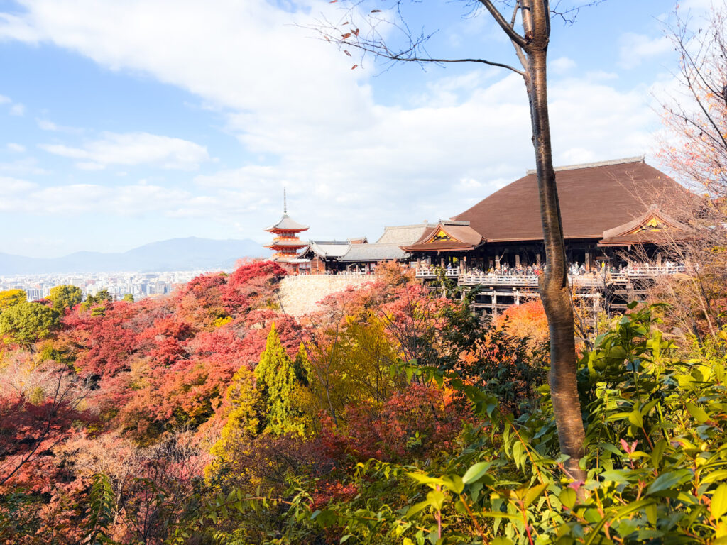 京都の街からも見える三重塔。古くから清水寺の風景のひとつとして親しまれています。